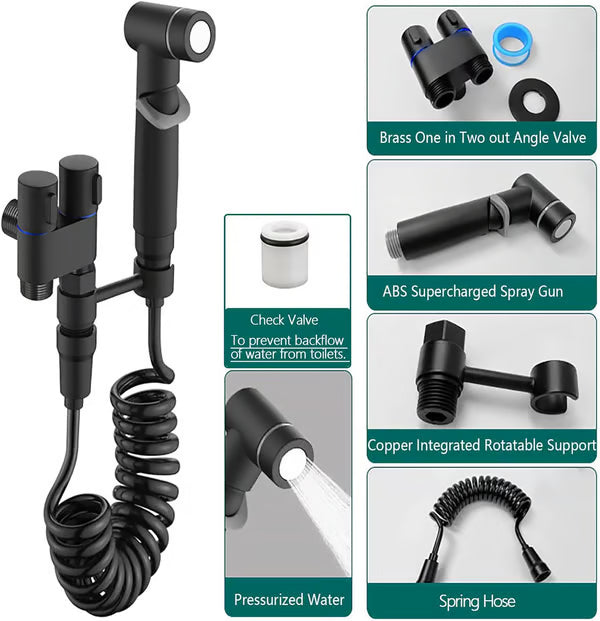 Handheld Toilet Bidet Sprayer1-In-2-Out & Dual Control Valve
